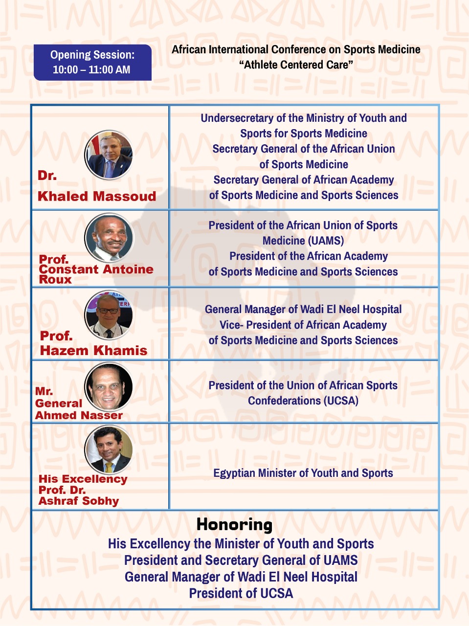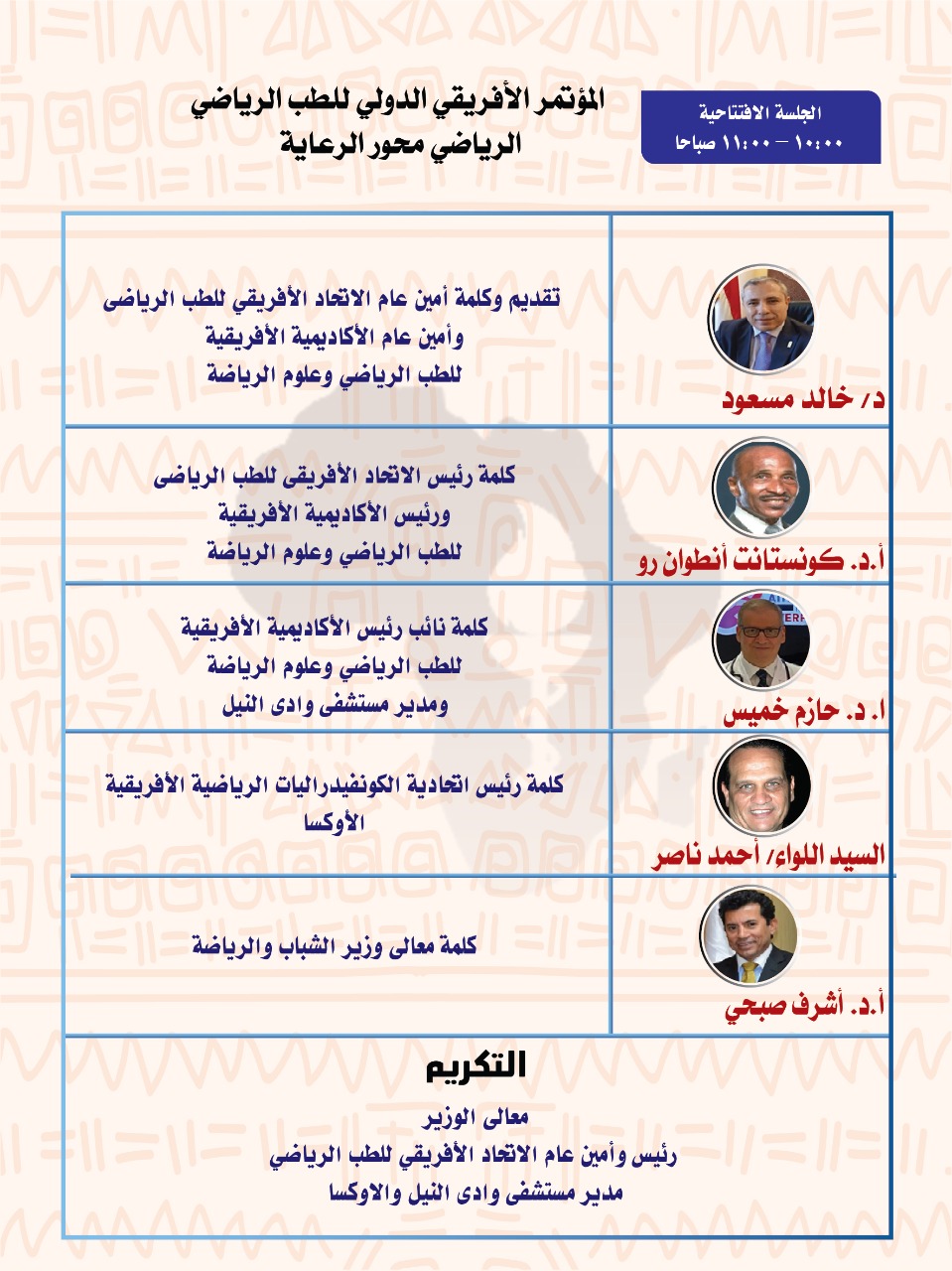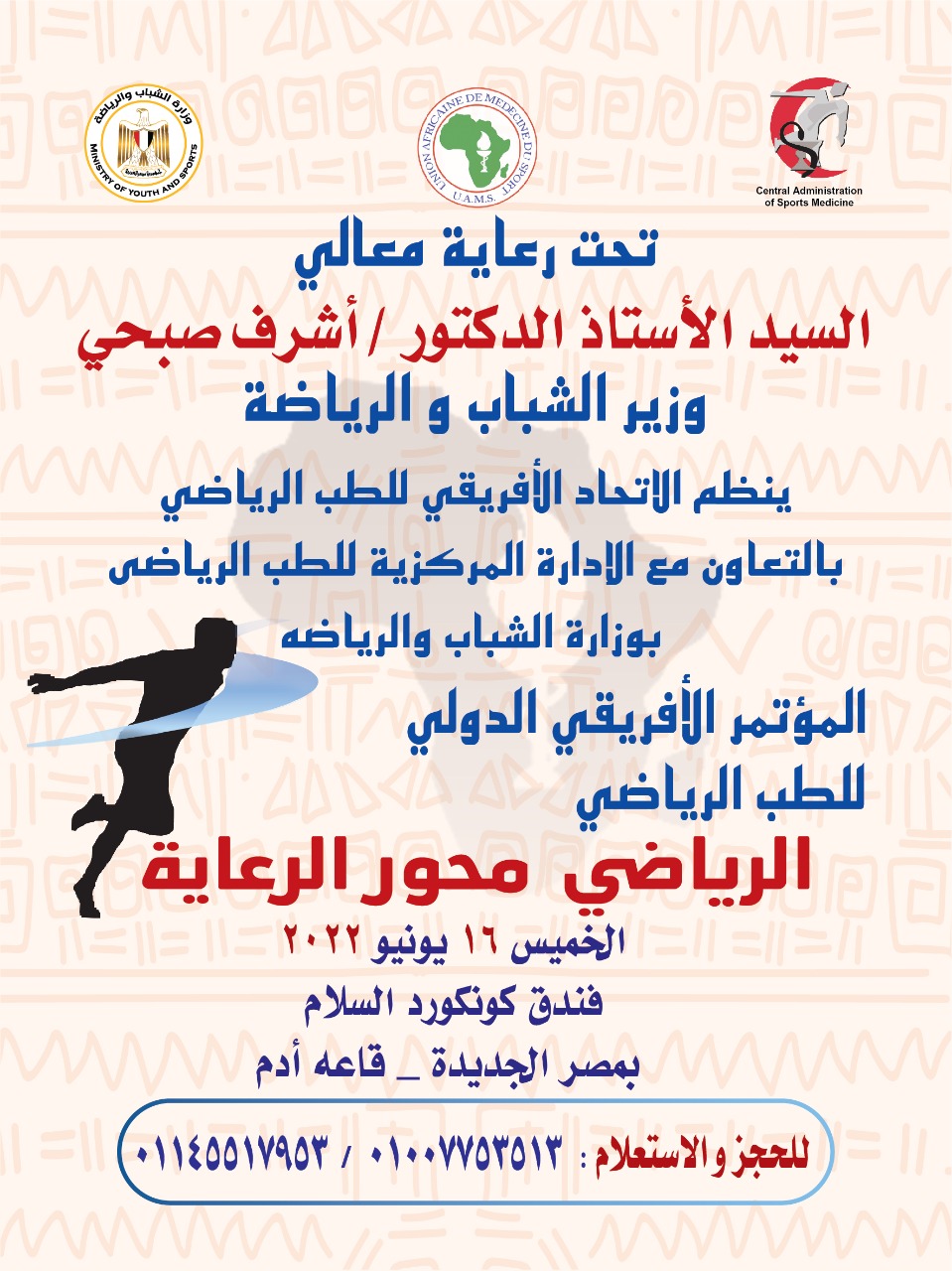 The African Union of Sports Medicine in Collaboration with The Central Administration of Sports Medicine, Ministry of Youth and Sports Has the Honor to Organize the Conference