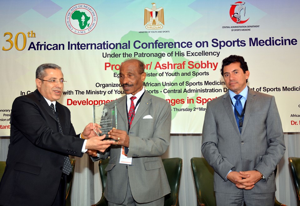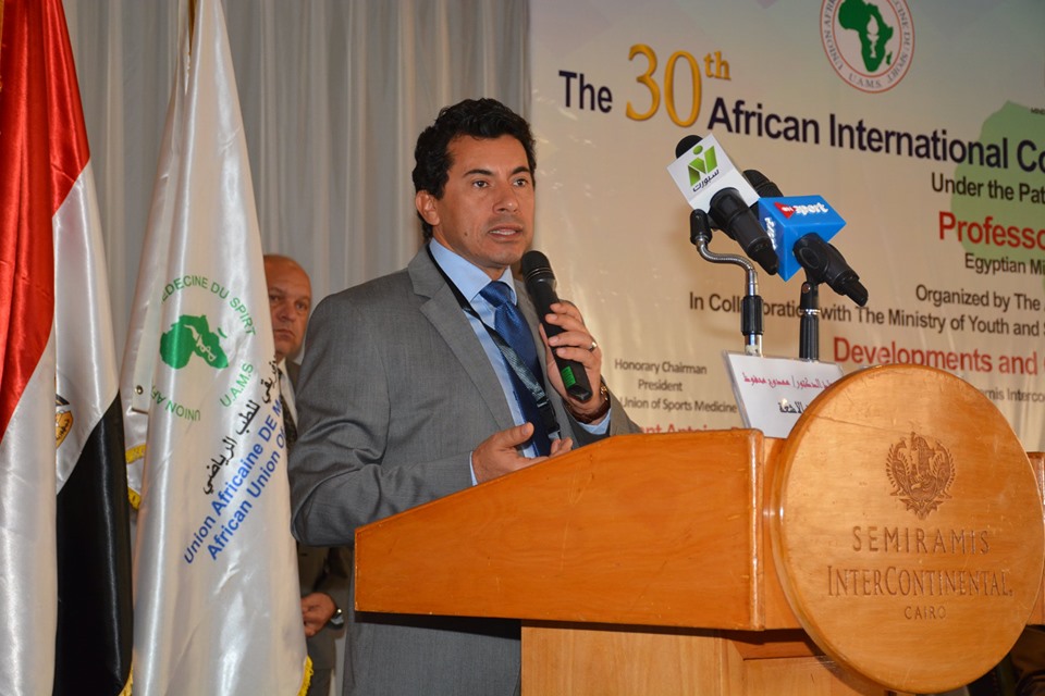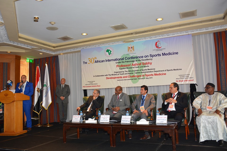 Minister of Youth and Sports Dr. Ashraf Sobhi and AUC President Dr. Constantine Row inaugurated the 30 th African Medical Medicine Conference under the title "Challenges and Developments in Sports Medicine" organized by the African Union of Sports Medicine under the auspices of the Ministry of Youth and Sports. .
